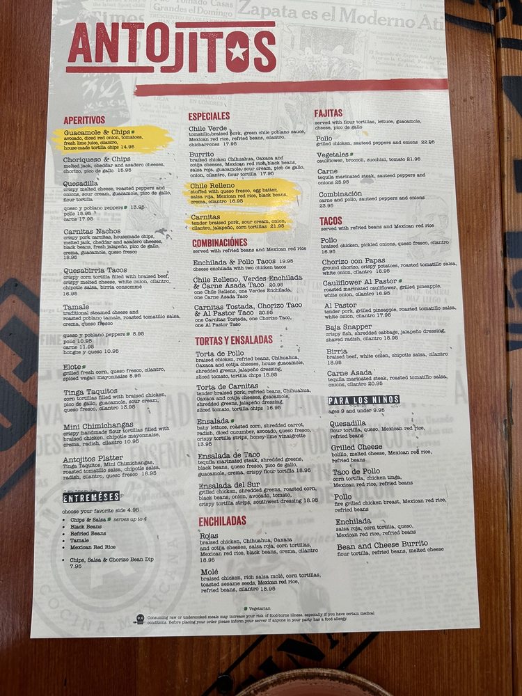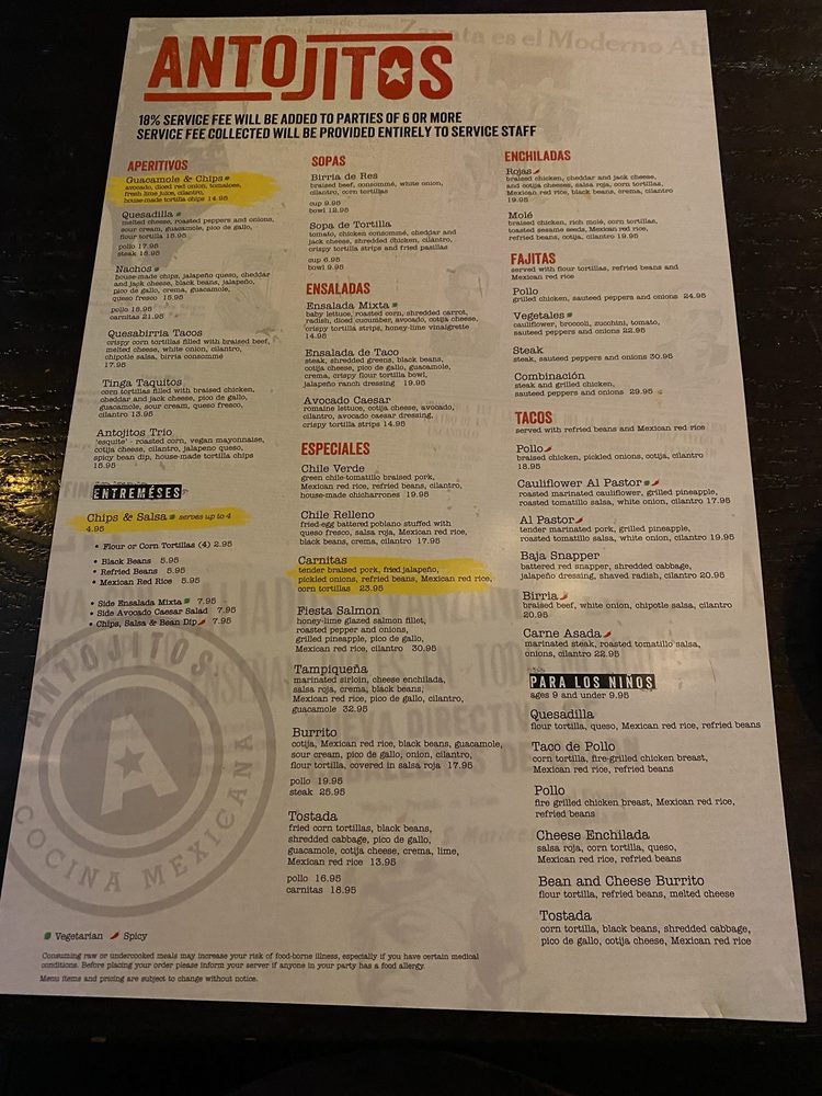 Antojitos Cocina Mexicana Menu (Update 2025)